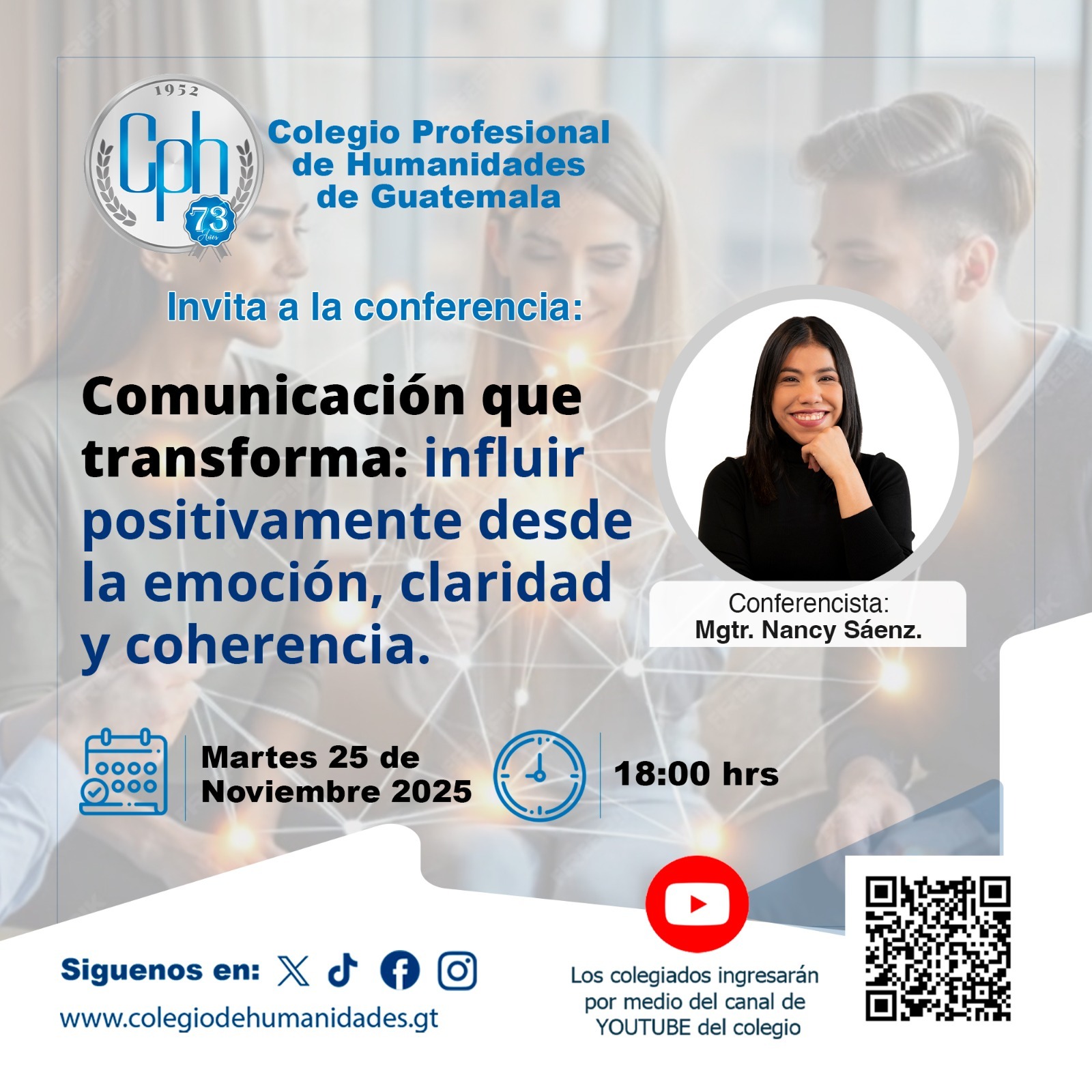 El Colegio Profesional de Humanidades de Guatemala invita a todos sus agremiados a participar en la conferencia titulada: